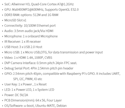 and CPU comes with heat sink. Most performance is better than 3B. It can be used to create various smart robots, tablet PC or more DIY products.